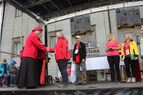 W sobotę 28 września 2013 r, wspólnie z Pawłem Milewiczem prowadziłem pielgrzymów z Baćkowic na Święty Krzyż przez Przełęcz Karczmarka, Szczytniak, Przełęcz Jeleniowską, Górę Jeleniowską, Paprocice, Kobylą Górę oraz Trzciankę. Nasza trasa nosiła nr 13 i nazwę - Herbowa „Rdzeń nazwy pierwszego pasma, na które wchodziliśmy, Jeleniowskiego, to jeleń – zwierze znane z herbu Nowej Słupi oraz wielu godeł ziemi kieleckiej.