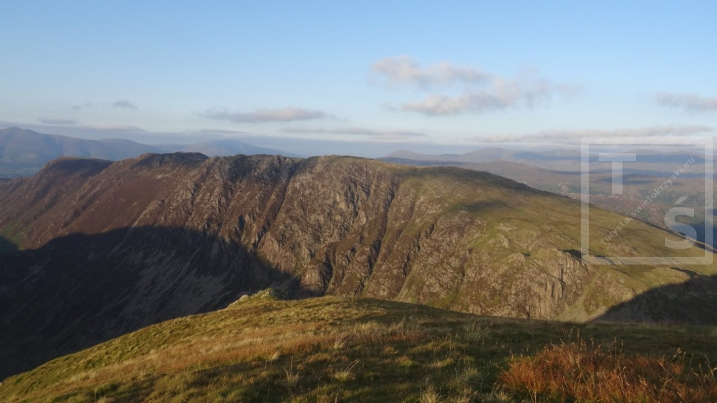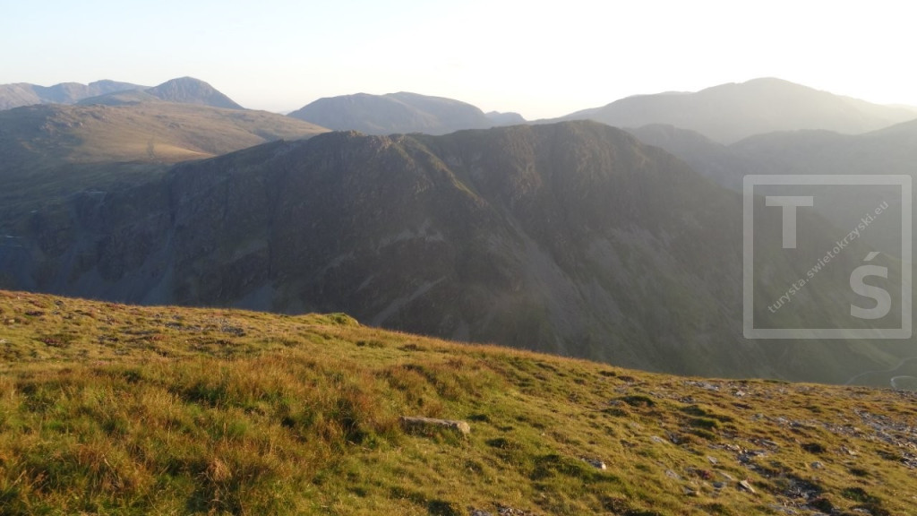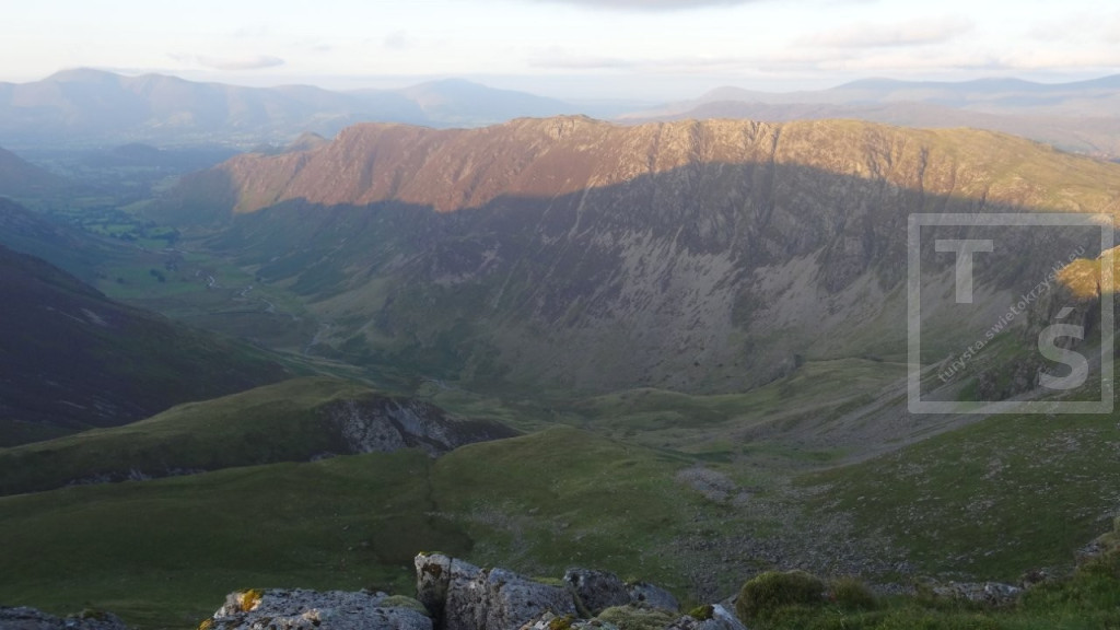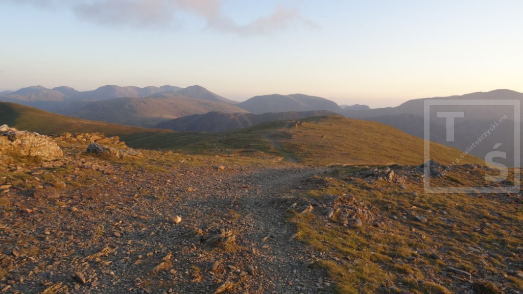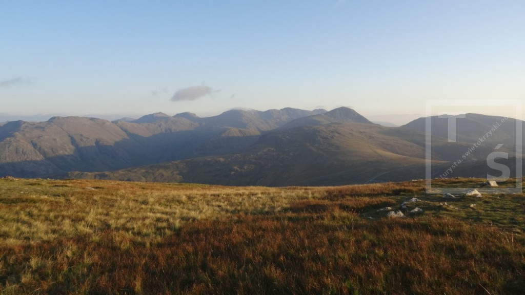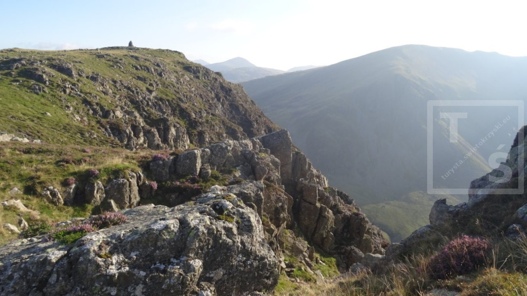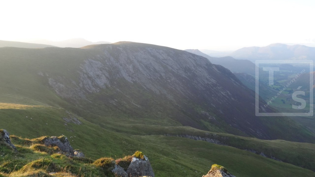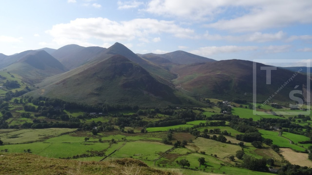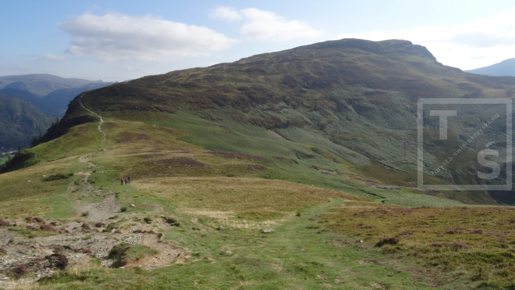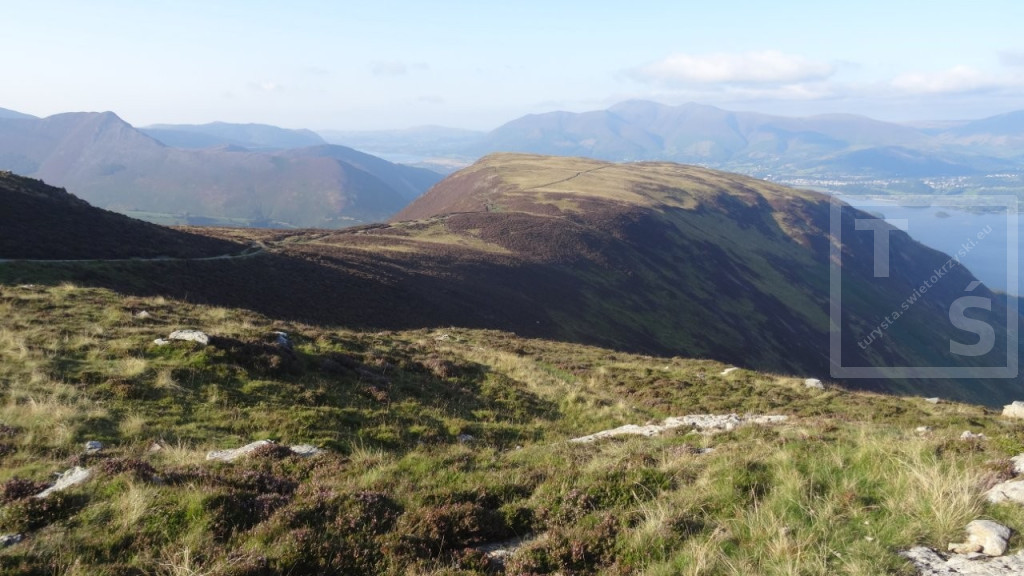 Na koniec mojego pobytu w Anglii wybrałem się na dwudniową wycieczkę do Lake District. Tym razem bez rodzinki, której wszak wystarczył spacer po pięknym Stanage Edge :-) Po dojechaniu pociągiem do miasta Penrith dalej autobusem udałem się do Keswick. Jest on jednym z największych ośrodków miejskich w Lake District, doskonałym miejscem wypadowym w Góry Kumbryjskie (Cumbrian Mountains). I właśnie w te góry wyruszyłem z Keswick na pieszą wędrówkę. W 2020r poruszałem się na północ od miasta, po Northern Fells (Wzgórza Północne) z pięknymi Skiddaw i Blencathra. Tym razem udałem się na North Western Fells (Wzgórza Północno-Zachodnie) leżące na południowy zachód od Keswick i na zachód od dużego jeziora Derwent Water. Pierwsze cztery kilometry po w miarę płaskim terenie przeszedłem szlakiem Cumbria Way. Później wspiąłem się na grzbiet i dalej pośród wrzosowisk i trawiastych wzniesień wędrowałem kilkanaście dalszych kilometrów. Po drodze też trochę skalnego rumoszu i nawet jakieś górskie jeziorko się znalazło. Najwyższy w tym paśmie Dale Head i położony dwa kilometry dalej Hindscarth. A ponieważ dzień się kończył więc na tym wierzchołku zakończyłem dzisiejszą wędrówkę.
