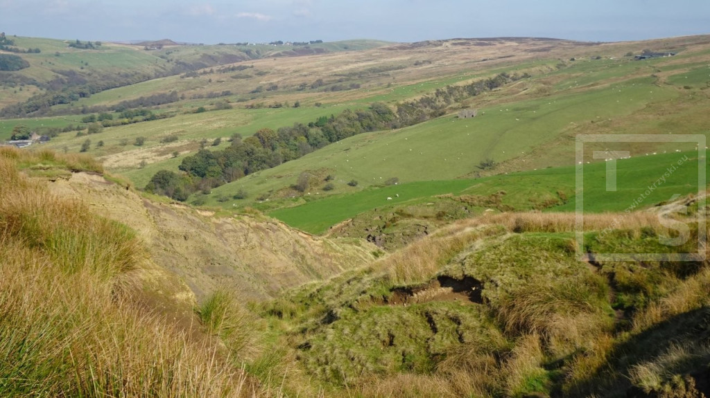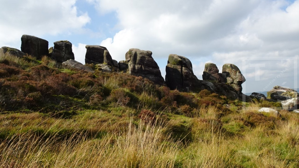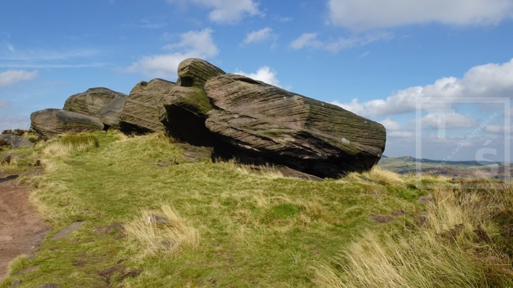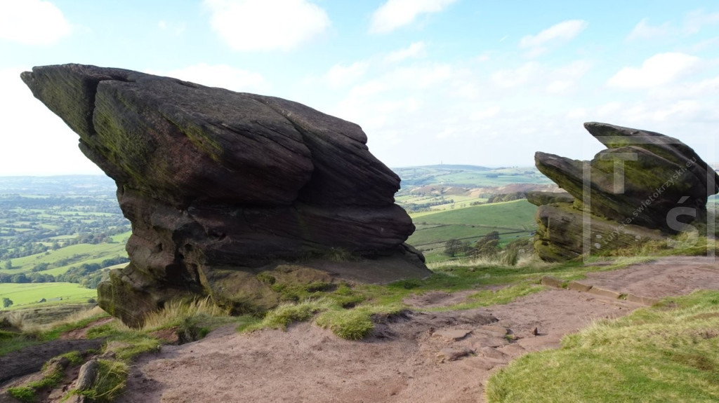 Celem drugiego dnia mojej kolejnej przygody z południową częścią Peak District było dotarcie do skalnego grzbietu The Roaches. Wyruszyłem więc z Hartington skoro świt i pośród porannych mgieł dotarłem do wioski Sheen. Stoi tu kościół pw. św. Łukasza, wzniesiony w XIVw St. Luke's Church. Dalej przez piękne wrzosowiska Swallow Moss i po 16-tu kilometrach doszedłem do osady Upper Hulme leżącej u podnóża The Roaches. Jest ona bardzo popularnym miejscem wypadowym dla miłośników pieszych wędrówek i wspinaczy. Roaches z francuskiego ,,les roches’’ oznacza skały a po polsku to - Karaluchy :-) Jest to imponujące kilkukilometrowe urwisko skalne o stromych zachodnich zboczach. Największe skupisko piaskowcowych wychodni skalnych znajduje się w pobliżu południowego szczytu Hen Cloud. W tym miejscu jest też najbardziej tłoczno, szczególnie dużo jest tu wspinaczy, których można spotkać o każdej porze roku. W pobliżu najwyższego punktu The Roaches (505m npm) znajduje się niewielkie jeziorko Doxely Pool. Związana jest z nim legenda o zamieszkującej go syrenie która wpadła tam spacerując samotnie w mglisty dzień po Roaches. Od tamtej pory zwabia doń niczego niespodziewających się wędrowców szykując im swoisty wodny grób. The Roaches kończą się na północy głęboką rozpadliną skalną zwaną Lud's Church. W czasach średniowiecznych było to miejsce kultu. Podobno ta rozpadlina powstała od uderzenia diabelskiego pazura, który grzebał sobie tu w ziemi :-) Jedna z legend głosi zaś, że ukrywał się w Lud's Church sam Robin Hood ze swoim wiernym towarzyszem, mnichem Bratem Tuckiem. Opuściwszy ten tłoczny kościół pomaszerowałem dalej doliną rzeki Dane, Dane Valley. Następnie wspiąłem się na wrzosowiska Axe Edge Moor którymi doszedłem do miasta Buxton. I tutaj zakończyłem moją dwudniową przygodę z Peak District National Park.