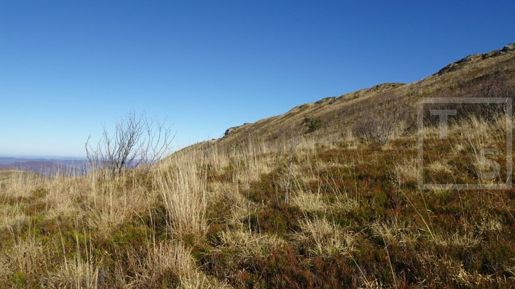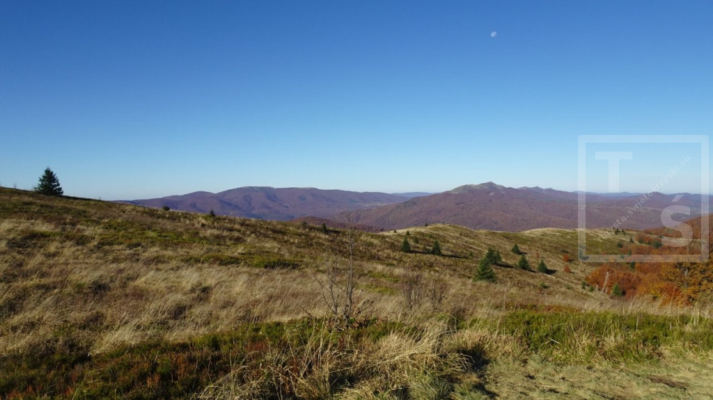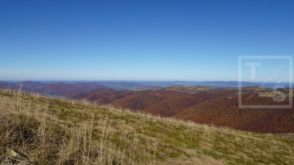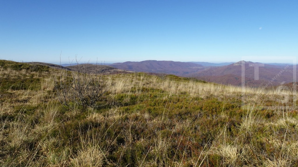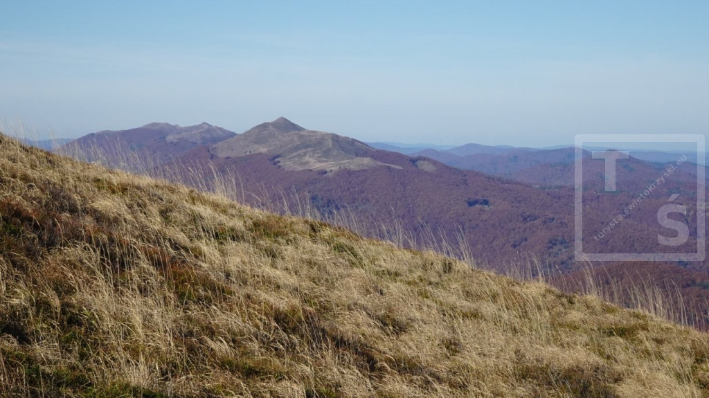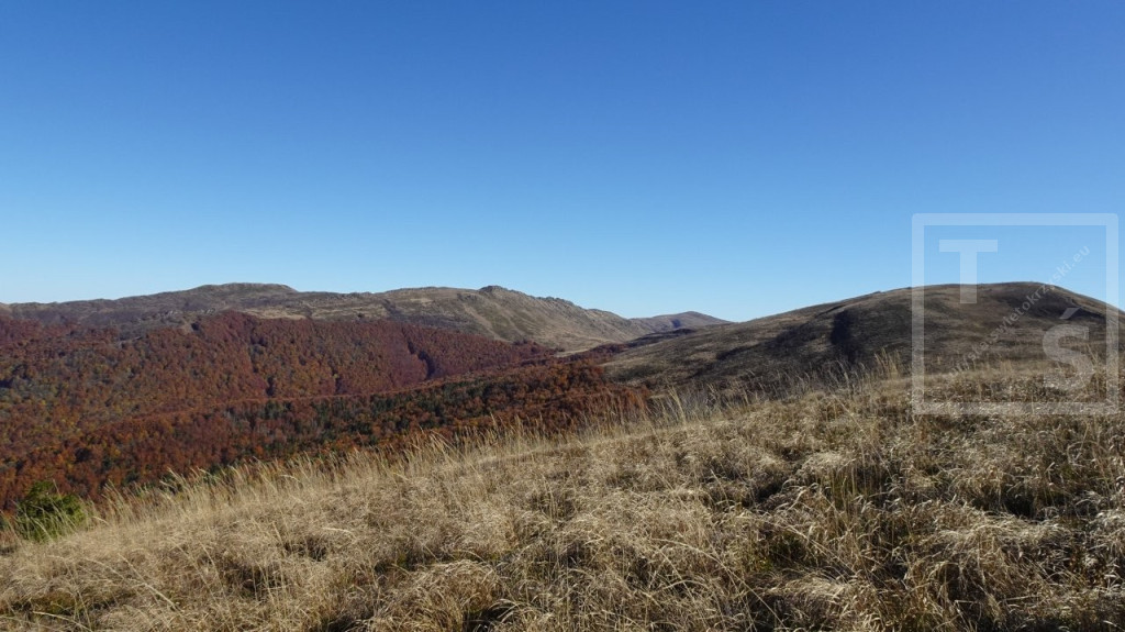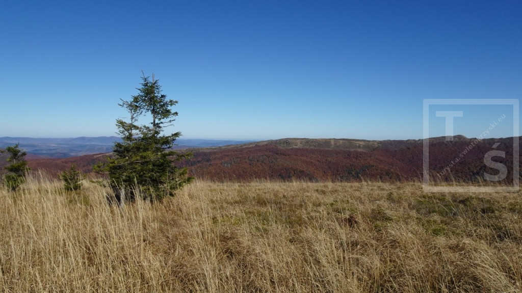 Poranek przywitał nas dość mroźno, auto wymagało skrobania. Jakoś się z tym faktem jednak uporaliśmy i ruszyliśmy z naszego legowiska koło Ustrzyk Dolnych ku Wysokim Bieszczadom. Po wczorajszej korekcie planów dojechaliśmy do Mucznego skąd wyruszyliśmy na szlak. Naszym celem był jeden z najpiękniejszych masywów w Bieszczadzkim Parku Narodowym, Bukowe Berdo. Pasmo to ma trzy kulminacje : Szołtynia (1201m npm), Połonina Dźwiniacka (1231m npm) oraz najwyższy punkt – Bukowe Berdo (1311m npm). Charakteryzuje się licznymi wychodniami skalnymi i rozległą połoniną w partii szczytowej. Z grzbietu roztacza się przepiękna rozległa panorama na wiele bieszczadzkich szczytów i ukraińskie pasma. Oczywiście nie omieszkaliśmy tez zaliczyć jak zwykle zatłoczona Tarnicę. Tęskno spoglądaliśmy na widoczne ukraińskie szczyty jeszcze nie tak dawno przez nas deptane. Pasmem Pikuja wędrowałem chyba częściej niż bywałem na Tarnicy :-)  Nawet zimą udało mi się zdobyć Pikuja, Ostrą Horę i widoczną też Borżawę. Może jeszcze kiedyś dane nam będzie tam zawitać, kto wie. Przez niezwykle widokowy Szeroki Wierch zeszliśmy do Ustrzyk Górnych.