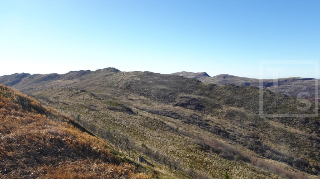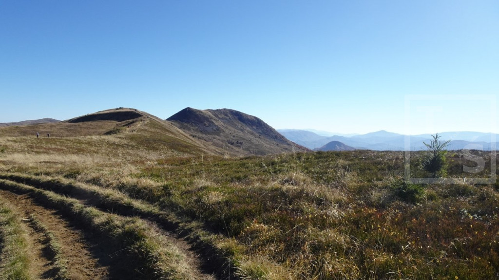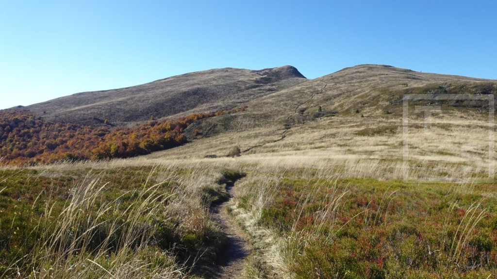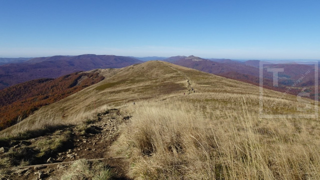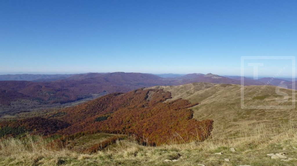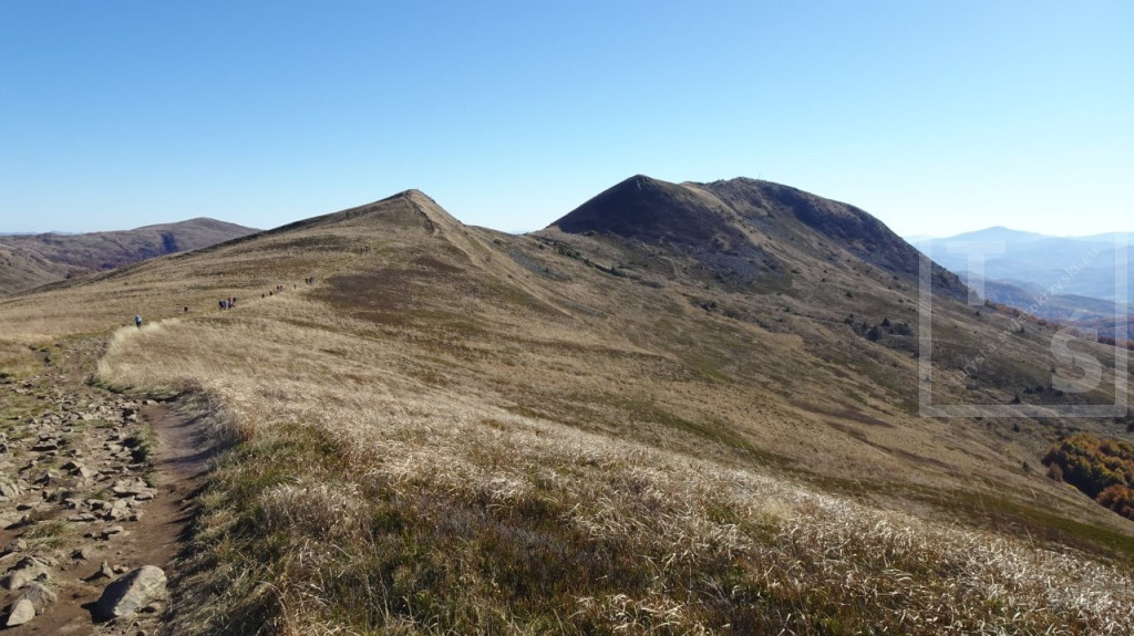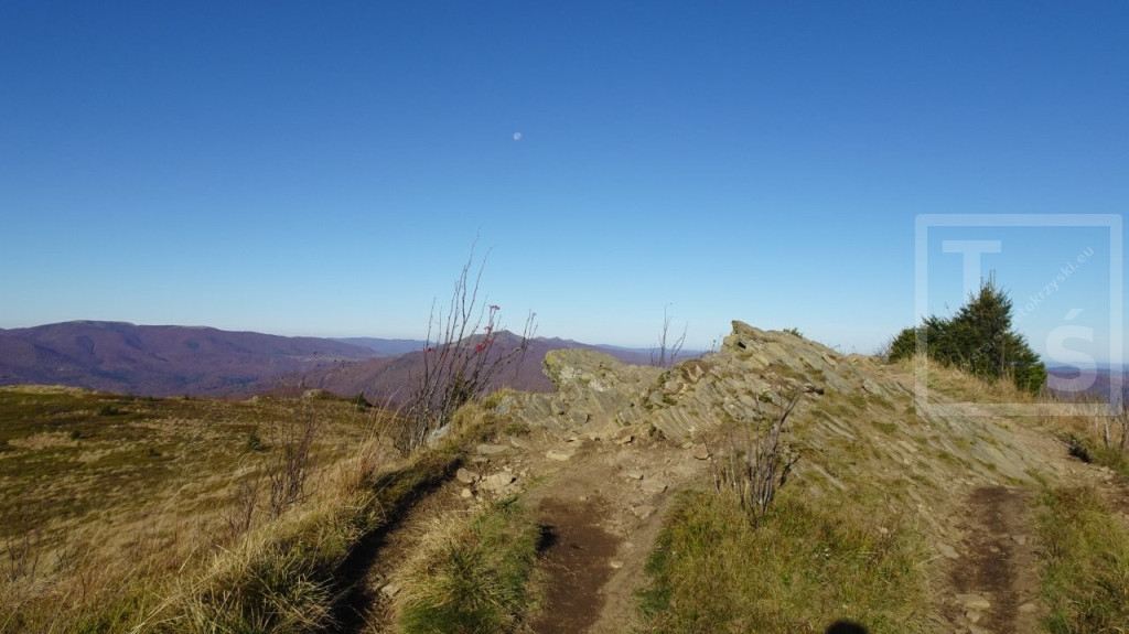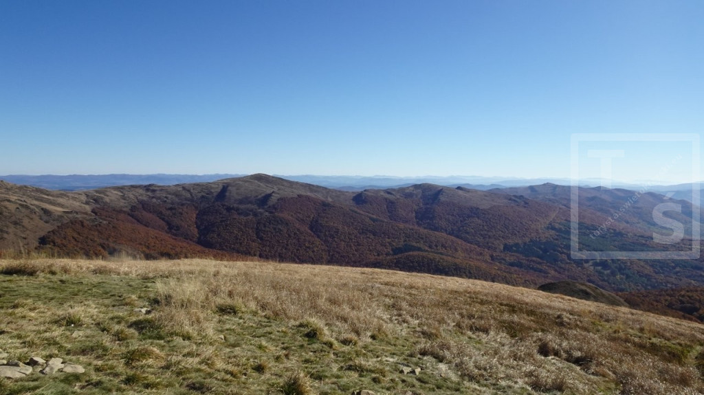 Poranek przywitał nas dość mroźno, auto wymagało skrobania. Jakoś się z tym faktem jednak uporaliśmy i ruszyliśmy z naszego legowiska koło Ustrzyk Dolnych ku Wysokim Bieszczadom. Po wczorajszej korekcie planów dojechaliśmy do Mucznego skąd wyruszyliśmy na szlak. Naszym celem był jeden z najpiękniejszych masywów w Bieszczadzkim Parku Narodowym, Bukowe Berdo. Pasmo to ma trzy kulminacje : Szołtynia (1201m npm), Połonina Dźwiniacka (1231m npm) oraz najwyższy punkt – Bukowe Berdo (1311m npm). Charakteryzuje się licznymi wychodniami skalnymi i rozległą połoniną w partii szczytowej. Z grzbietu roztacza się przepiękna rozległa panorama na wiele bieszczadzkich szczytów i ukraińskie pasma. Oczywiście nie omieszkaliśmy tez zaliczyć jak zwykle zatłoczona Tarnicę. Tęskno spoglądaliśmy na widoczne ukraińskie szczyty jeszcze nie tak dawno przez nas deptane. Pasmem Pikuja wędrowałem chyba częściej niż bywałem na Tarnicy :-)  Nawet zimą udało mi się zdobyć Pikuja, Ostrą Horę i widoczną też Borżawę. Może jeszcze kiedyś dane nam będzie tam zawitać, kto wie. Przez niezwykle widokowy Szeroki Wierch zeszliśmy do Ustrzyk Górnych.